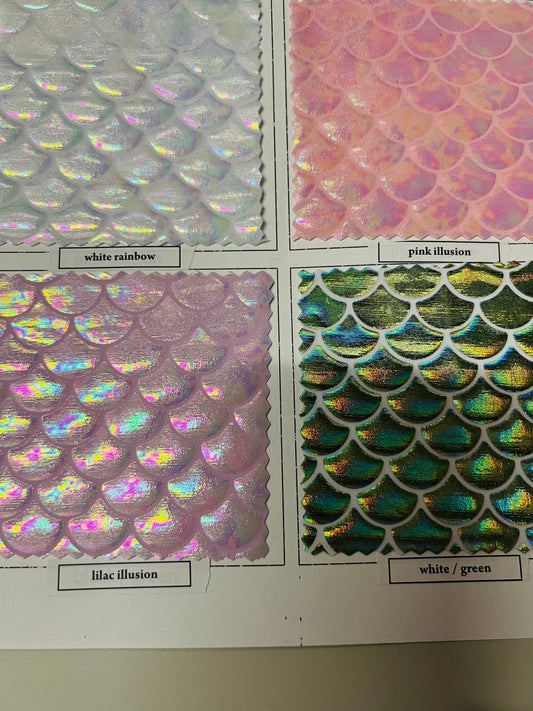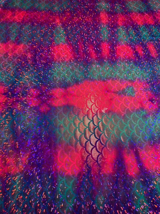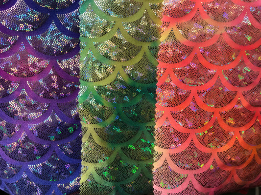 Mermaid design Hologram nylon spandex 4-way stretch 58/60” Sold by the YD. Ships Worldwide from Los Angeles California USA.