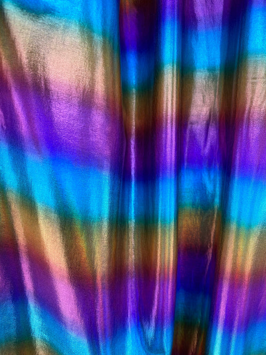 New mermaid!!Rainbow foil metallic nylon Spandex 4-way Stretch 58/60” Sold by the YD. Ships worldwide from Los Angeles California USA.