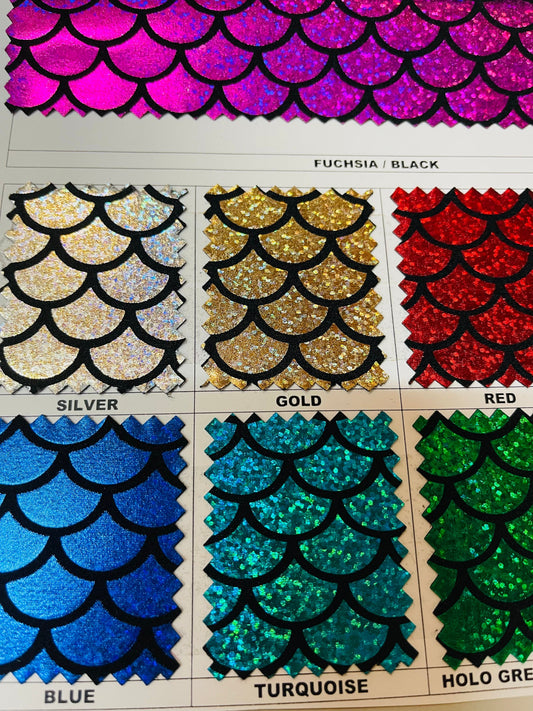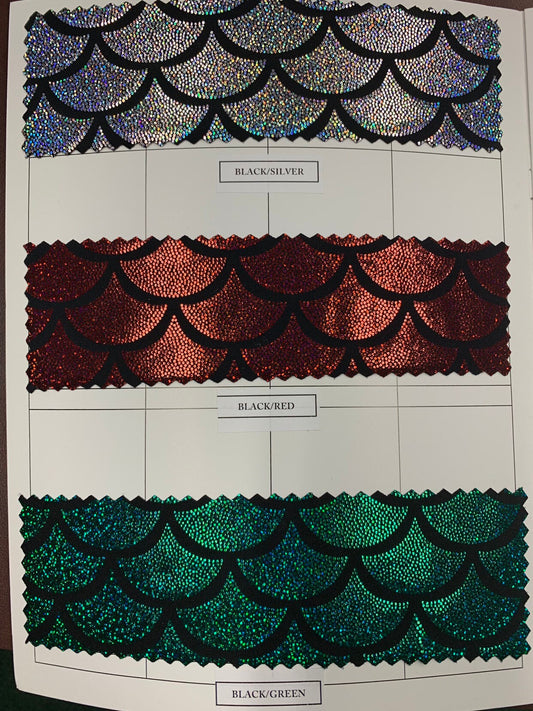 Mermaid design Hologram metallic fish scales on nylon spandex 4way Stretch 58/60" Sold by the YD. Ships worldwide from Los Angeles CA USA