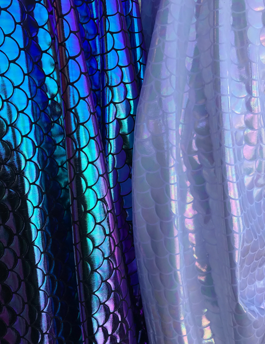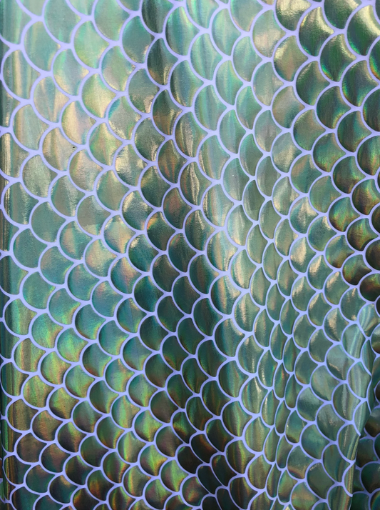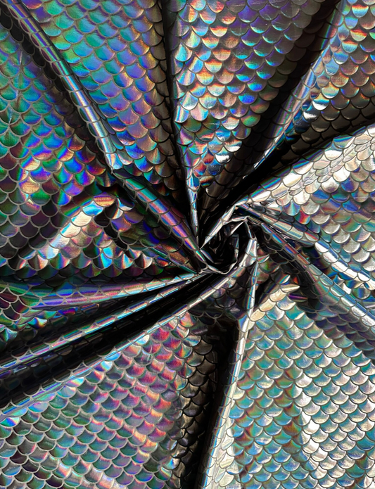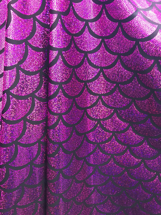 Medium mermaid fish scales metallic Hologram foil 58/60" 4way stretch nylon spandex sold by the YD. Ships worldwide from Los Angeles CA