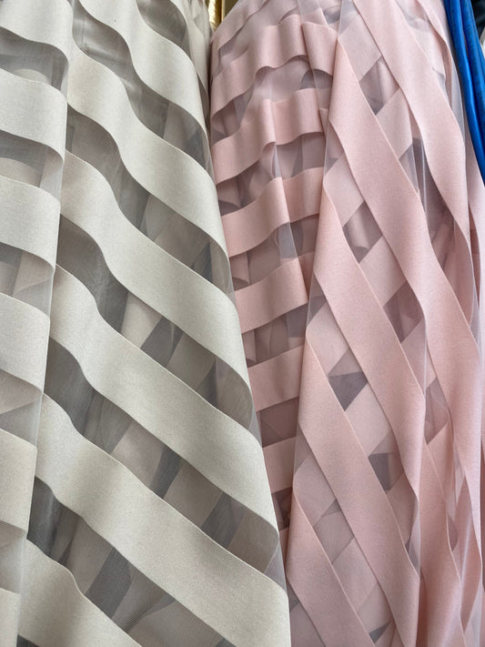 New stripes mesh design see though fabric 2-way stretch 58/60” Sold by the YD. Ships Worldwide from Los Angeles California USA