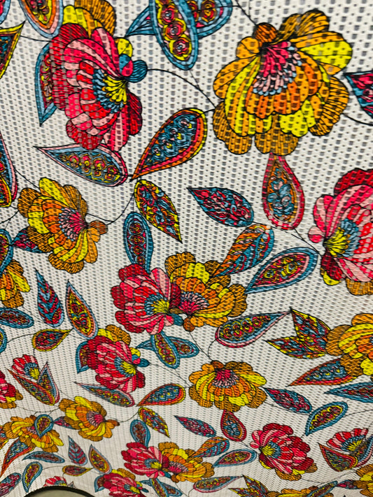 New floral design on spandex sport mesh 2-way stretch 58/60” High quality fabrics by AlexLAFabrics