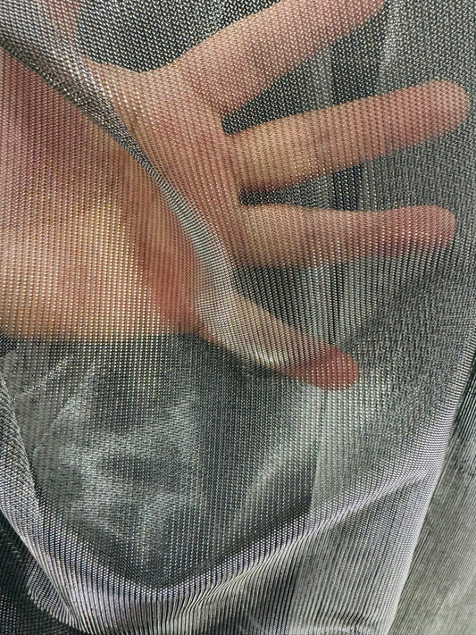 Shiny Metallic mesh see though fabric 2-way stretch 58/60” Sold by the YD. Ships Worldwide from Los Angeles California USA.