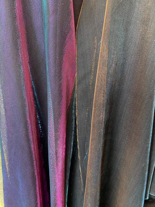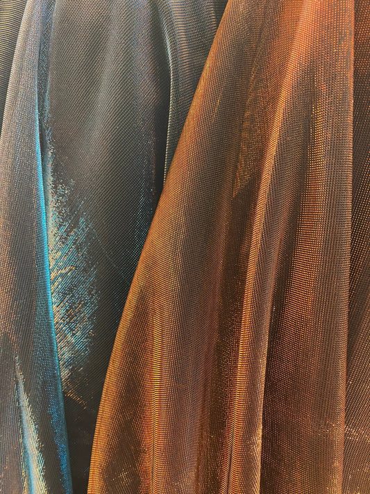 New metallic Iridescent 2tone mesh 2-way stretch 58/60” Sold by the YD. Ships worldwide from Los Angeles California USA.