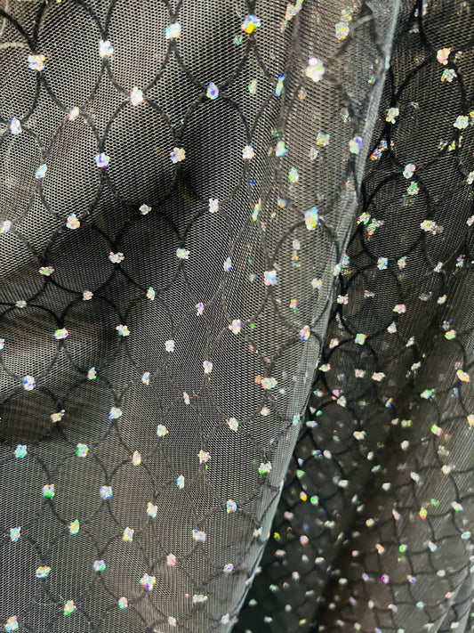 Oval design flocking glitter stretch mesh one way stretch 58/60” Sold by the YD. Ships Worldwide from Los Angeles California USA