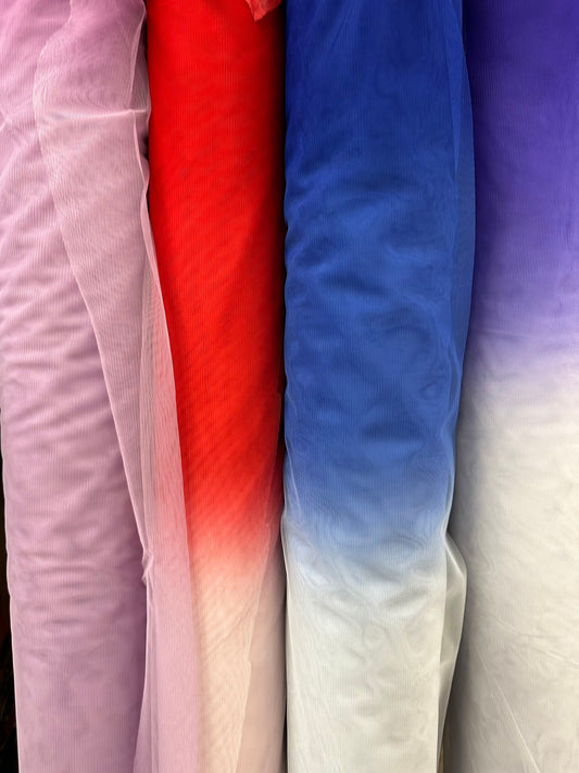 New Ombré design Multicolors print on poly mesh 2-way stretch 58/60” Sold by the YD. Ships worldwide from Los Angeles California USA