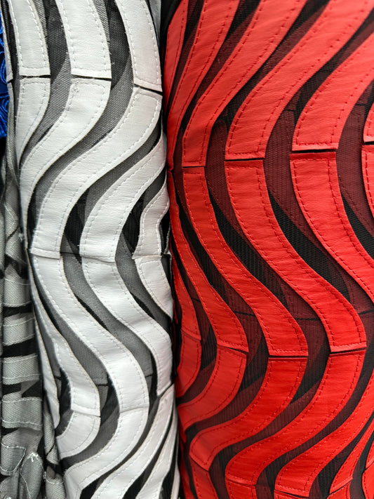 Wavy design leather looking embroidered on stretch mesh 2-way stretch 55/57” Sold by the YD. Ships Worldwide from Los Angeles California USA