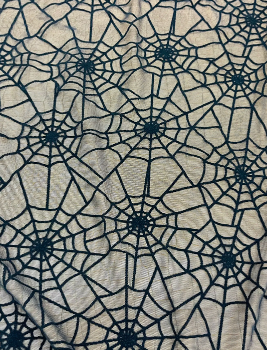Spiderweb design best quality of stretch power mesh with black flocking 4-way stretch 58/60”