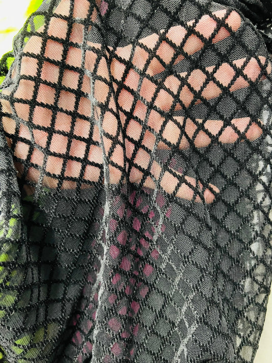 Diamond design flocking power mesh 4-way stretch 58/60” Sold by the YD. Ships Worldwide from Los Angeles California USA.