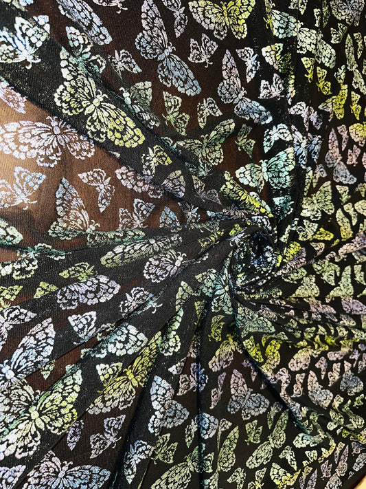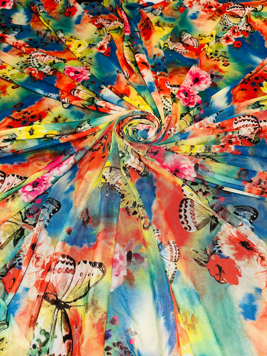 Butterfly design Multicolor print on best quality of nylon power mesh 4-way stretch 58/60” Sold by the YD. Ships Worldwide from