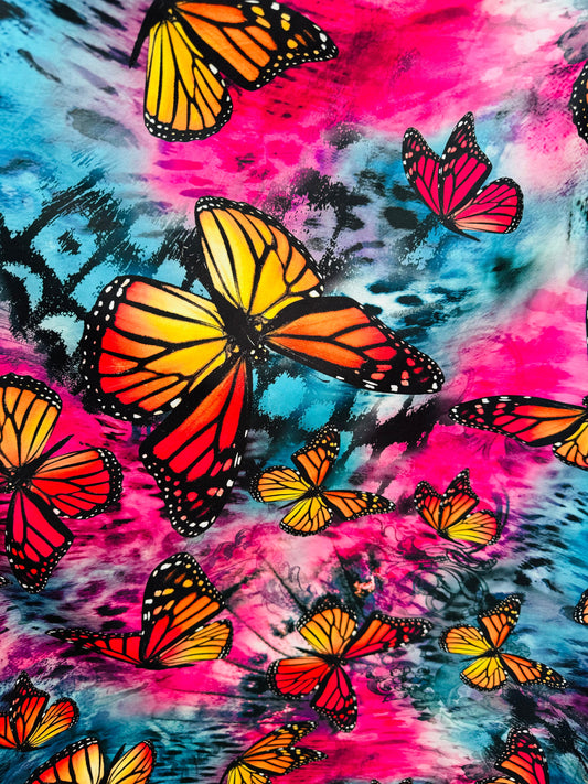 Luxury Butterfly design multicolor print on great quality of poly spandex 4-way stretch 58/60”