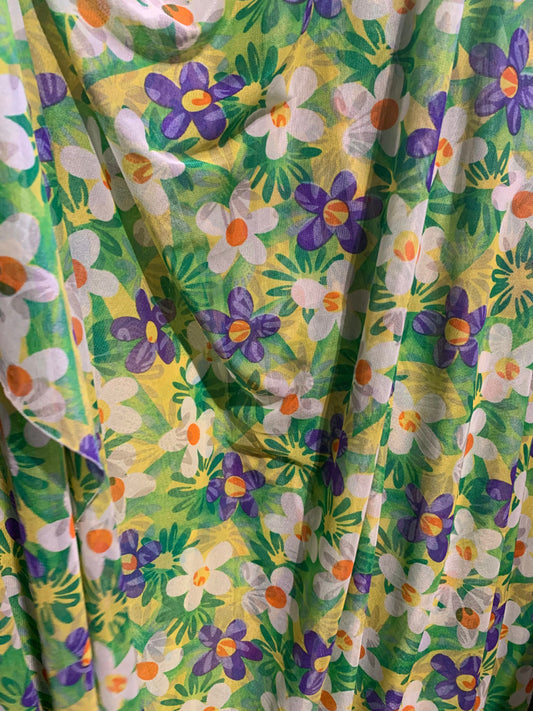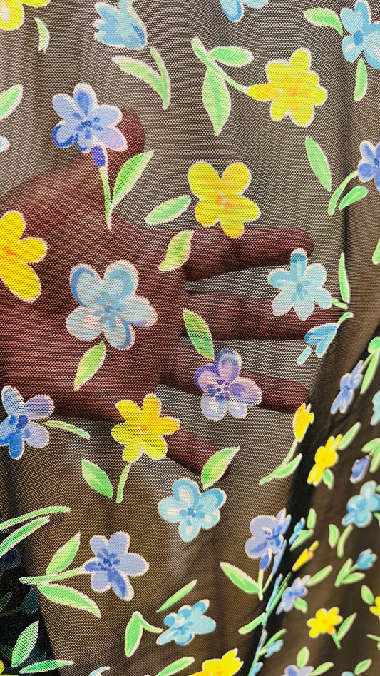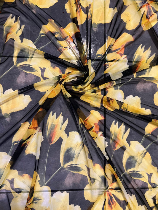 New Romantic Yellow flower design print on great quality of power mesh 4-way stretch 58/60”