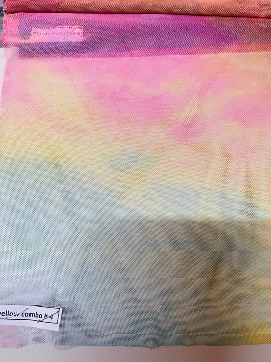 New Tie Dye power mesh nylon mesh 4-way stretch 58/60” Sold by the YD. Ships Worldwide from Los Angeles California USA.