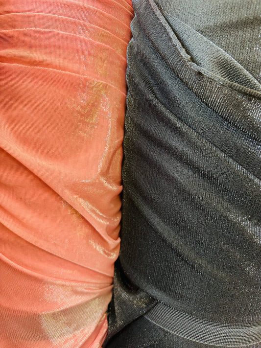 New metallic iridescent mesh 4-way stretch 58/60” Sold by the YD. Ships worldwide from Los Angeles California USA