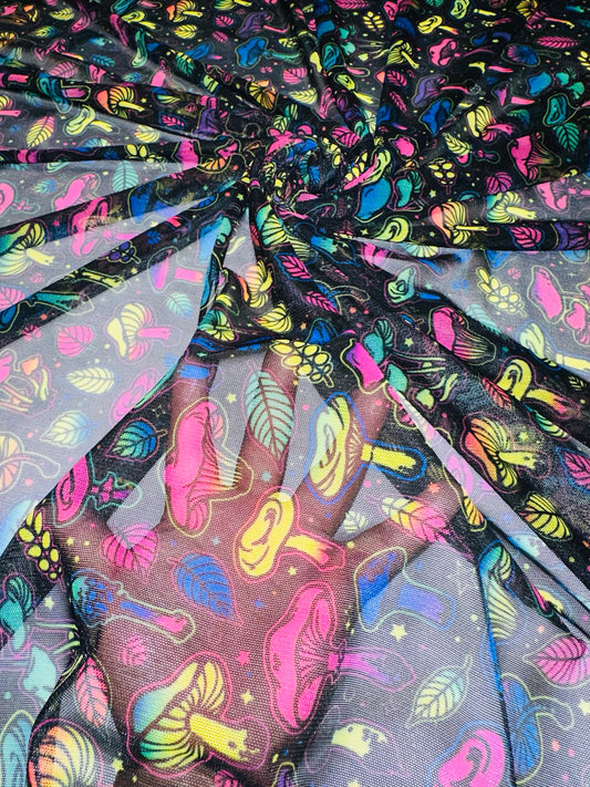 New Magic Mushrooms design print on great quality of nylon power mesh 4-way stretch 58/60”