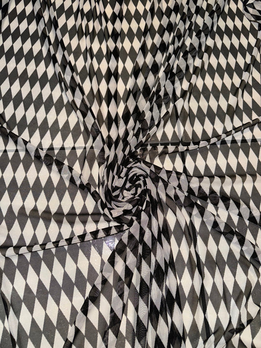 Diamond design White/Black print on great quality of power mesh 4-way stretch 58/60”