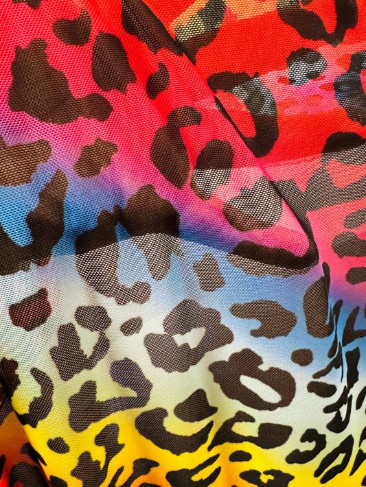 New Rainbow leopard design on stretch power mesh 4-way stretch 58/60”