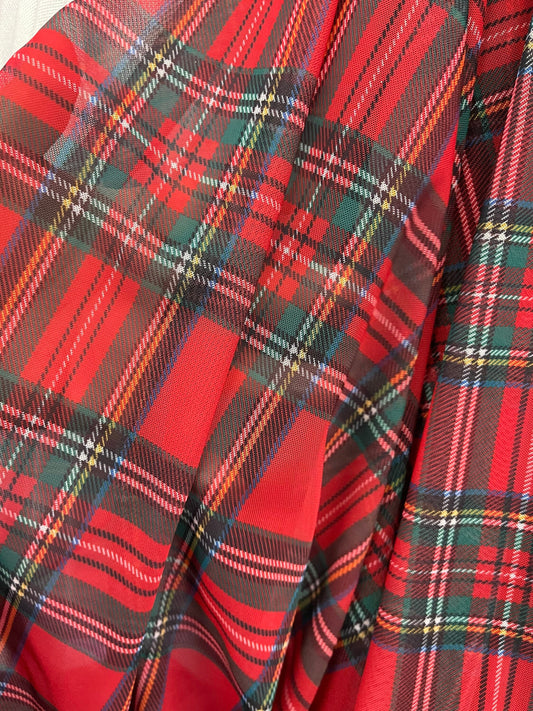Plaid design print on great quality of mesh spandex 4-way stretch 58/60” Sold by the YD. Ships Worldwide from Los Angeles California USA.
