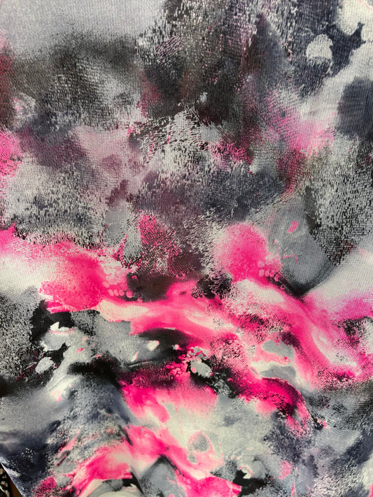 New Tie dye design gray/pink print on power mesh stretch 4-way 58/60” Sold by the YD. Ships Worldwide from Los Angeles California USA.