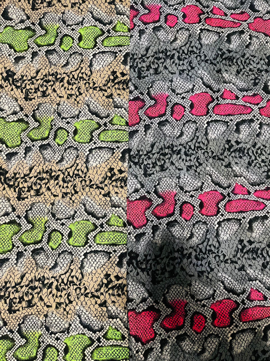 New Venom exotic snake design print on Poly spandex 4-way Stretch it glows in the dark with black light 58/60” Sold by the YD.