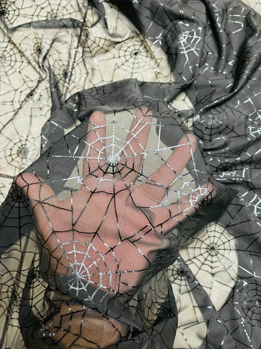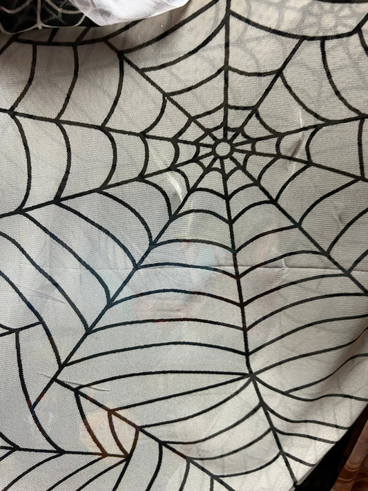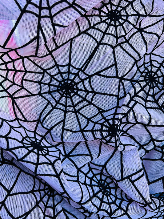 Spiderweb design print on poly mesh 4-way stretch 58/60” Sold by the YD. Ships Worldwide from Los Angeles California USA
