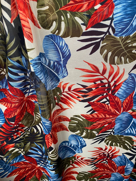 New tropical leaf design print on great quality of ponder mesh 4-way stretch 58/60” Sold by the YD. Ships Worldwide from Los Ángeles califor