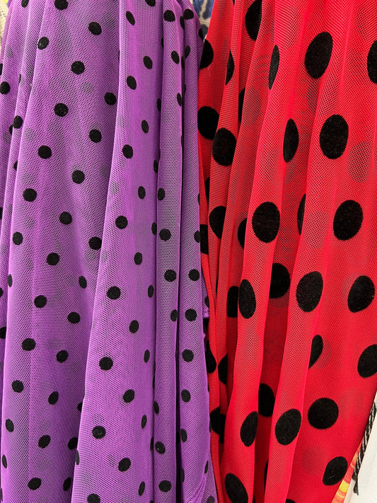 Polka dots design power mesh nylon spandex with flocking dots 4-way stretch 58/60” Sold by the YD. Ships Worldwide from Los Angeles CA