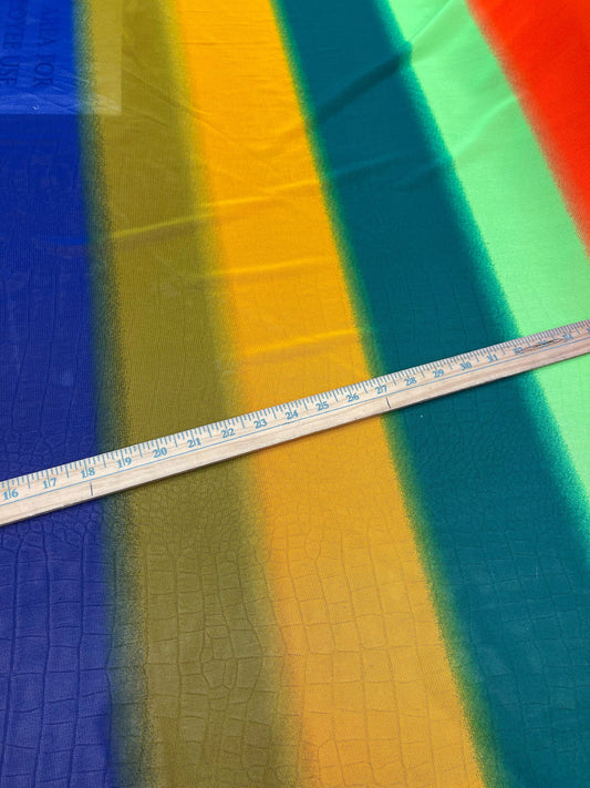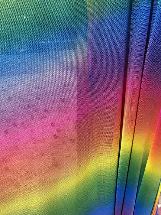 New power mesh rainbow color 4way Stretch 58/60" Sold by the YD. Ships worldwide from Los Angeles California USA.