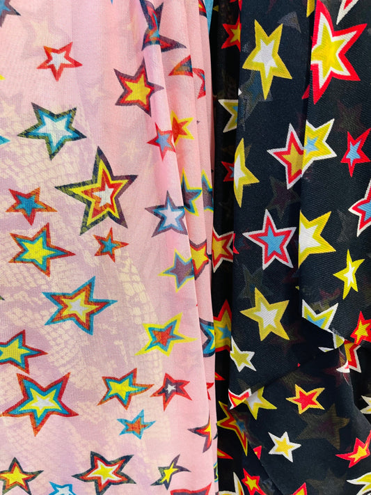 New Stars design multicolor print on great quality of poly mesh 4-way stretch 58/60” Sold by the YD. Ships Worldwide from Los Angeles CA