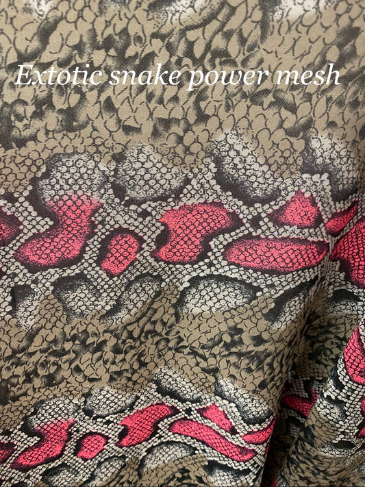 New power mesh exotic snake design it glows in the dark with UV light 4-way Stretch 58/60” Sold by the YD. Ships worldwide from Los Angeles