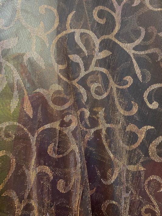 New Swirl design metallic mesh two tone copper 4-way stretch 58/60” Sold by the YD. Ships worldwide from Los Angeles California USA.