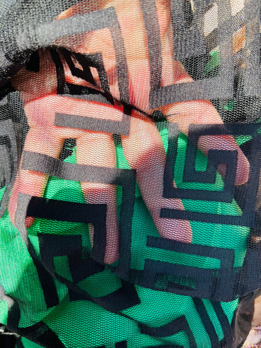 New Power mesh print Jennifer design 4-way stretch 58/60” Sold by the YD. Ships worldwide from Los Angeles California USA.