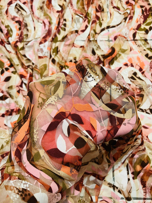 New Modern abstract design multicolor print on mesh 4-way stretch 58/60” Sold by the YD. Ships Worldwide from Los Angeles California USA.Con