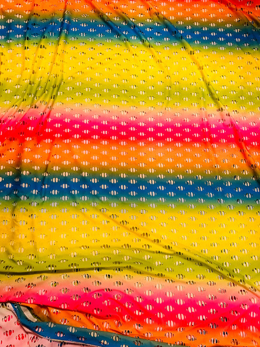 New rainbow design with neon colors print on poly power mesh 4-way stretch 58/60” Sold by the YD. Ships Worldwide from Los Angeles cali