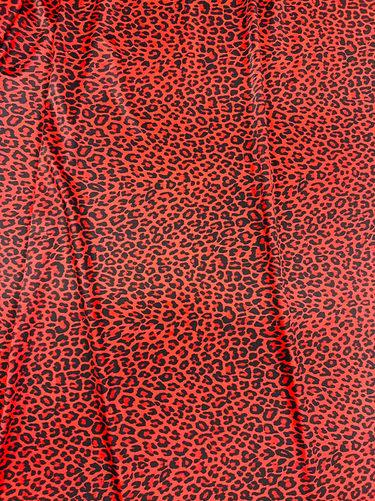 New Exotic Leopard design Red/Black print on great quality of Nylon spandex 4-way stretch 58/60” Sold by the YD. Ships Worldwide