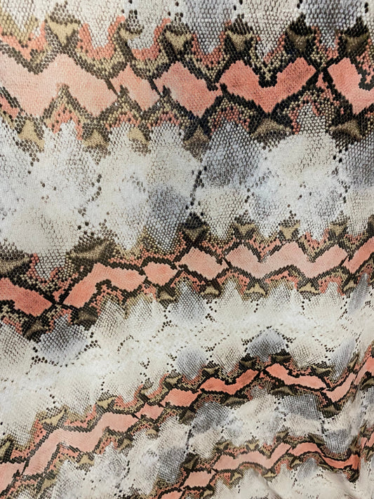 New Exotic snake design Nude/Coral/brown print on power mesh 4-way Stretch 58/60” Sold by the YD. Ships worldwide from Los Angeles CA USA.