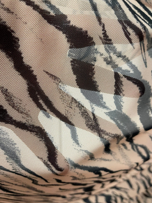 New Exotic Tiger design print on power mesh 4-way stretch 58/60” Sold by the YD. Ships Worldwide from Los Angeles California USA.