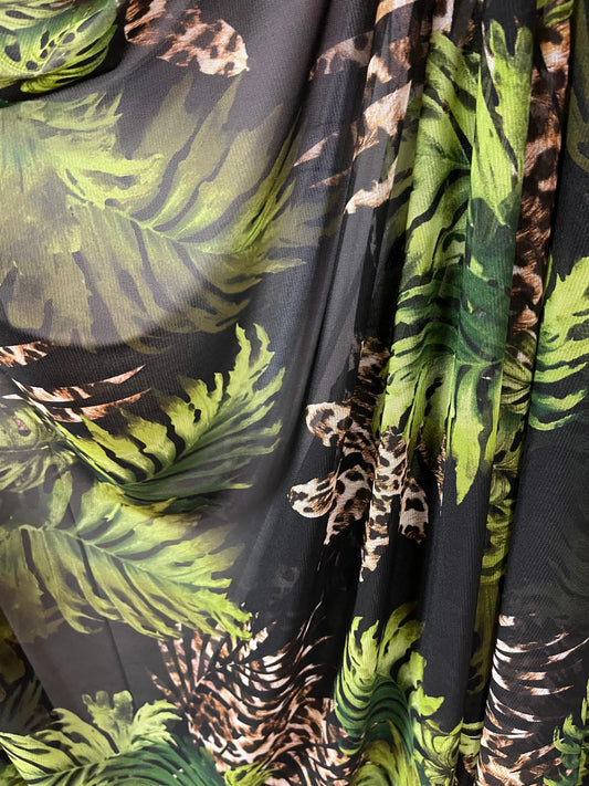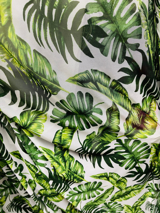 New Jennifer design palm left print on great quality of poly mesh 4-way stretch 58/60” Sold by the YD. Ships worldwide from Los Angeles cali