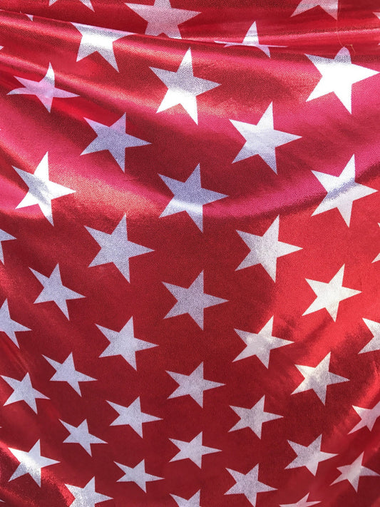 Foggy foil big stars print on nylon spandex 4way 58/60" red/white sold by the yd. Ships worldwide from Los Angeles California USA