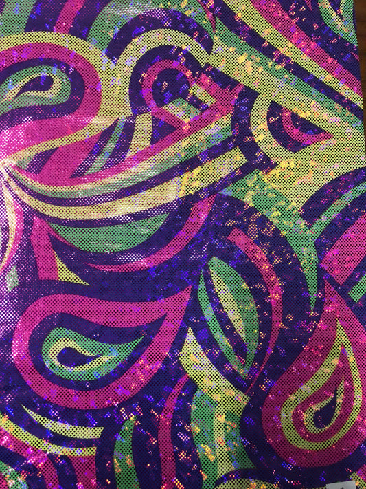 New hologram spandex Paisley abstract design 2tone 4way stretch 58/60" Sold by the YD. Ships worldwide from Los Angeles California USA