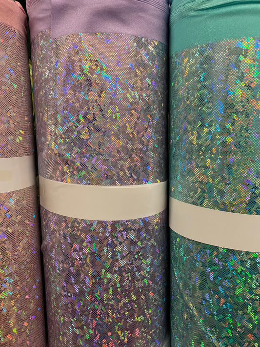 New shattered glass hologram metallic nylon Spandex 4-way Stretch 58/60” Sold by the YD. Ships worldwide from Los Angeles California USA.