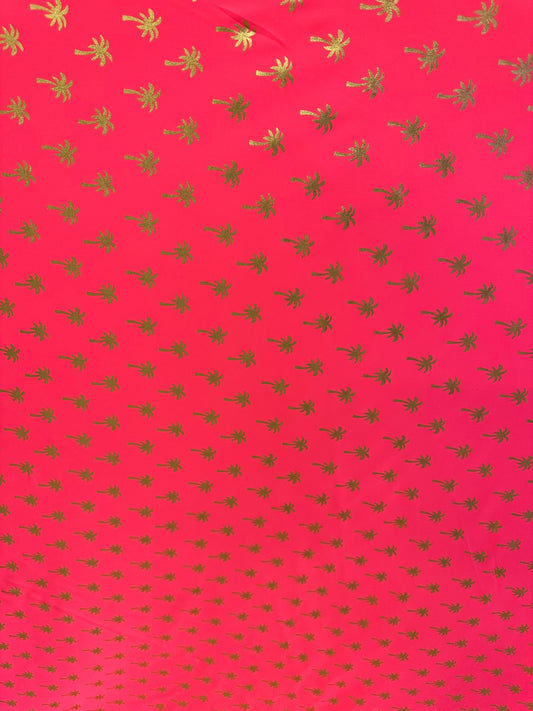 New Palm tree design metallic nylon spandex best quality in the market 4-way stretch 58/60” Sold by the YD.