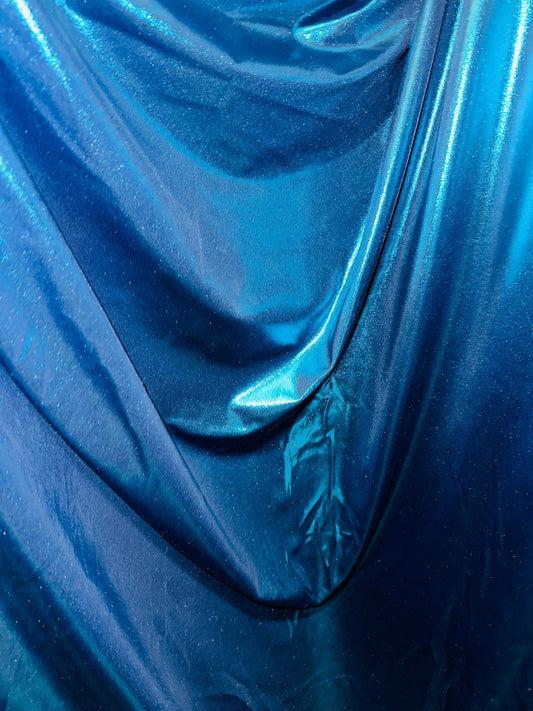 Navy/Teal metallic nylon spandex with foggy foil 4-way stretch 58/60”