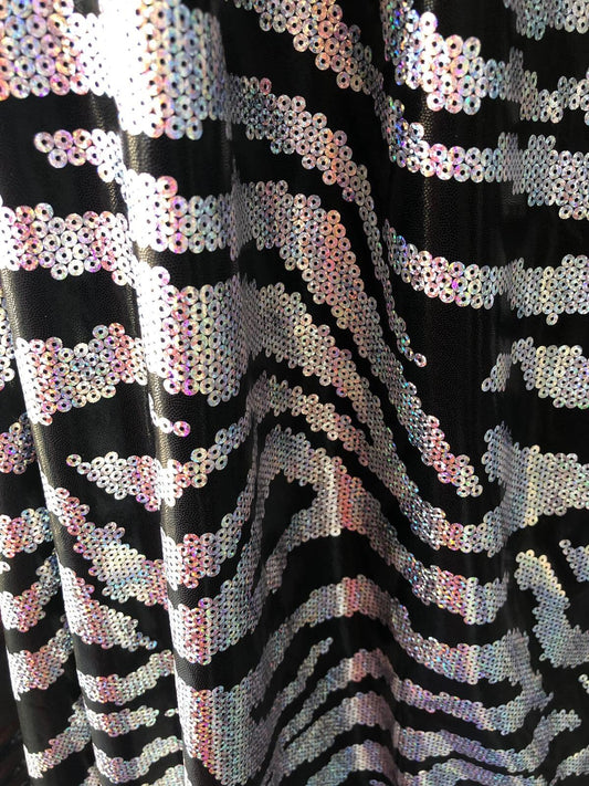 New metallic nylon spandex sequins zebra looking with foggy foil all over 4way stretch 58/60" Sold by the YD. Ships worldwide from L.A CA