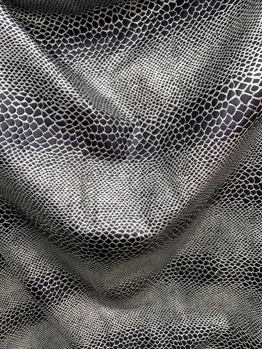New Snake Metallic Foil Cobra Design Black/Silver Nylon Spandex 4-Way Stretch 58/60" Sold By The YD. Ships Worldwide From Los Angeles CA USA