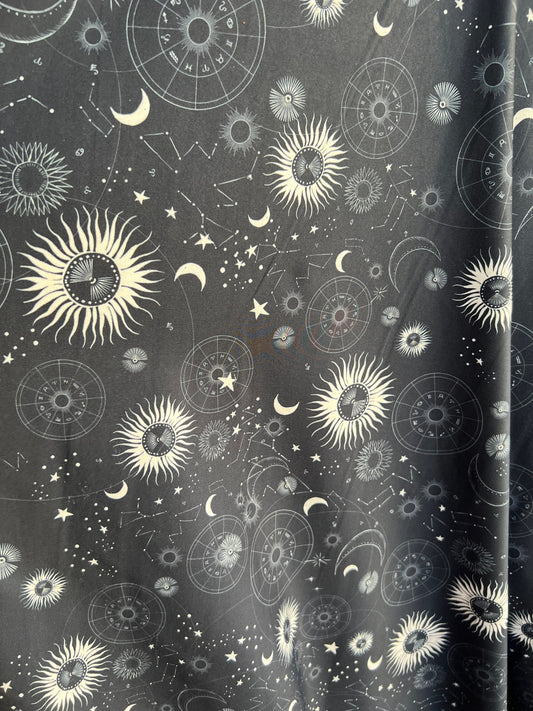 New celestial design print on great quality of nylon spandex brushed 4-way stretch 58/60” Sold by the YD. Ships Worldwide from Los Angeles