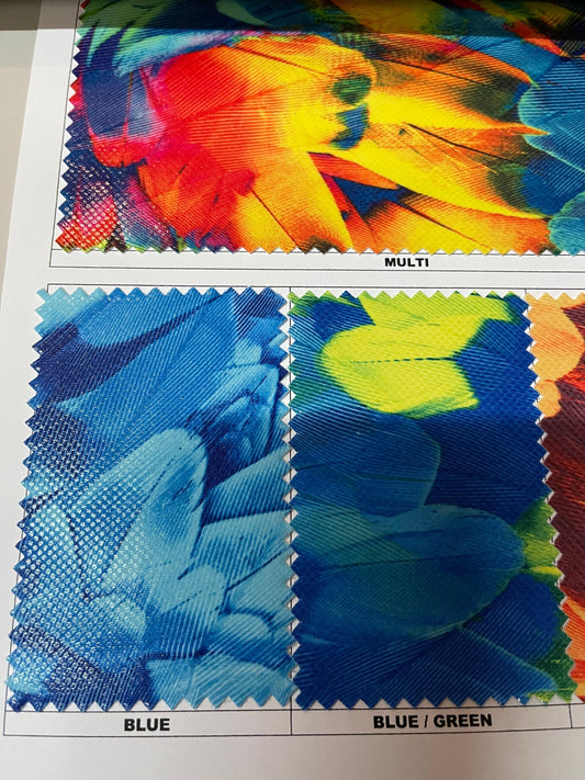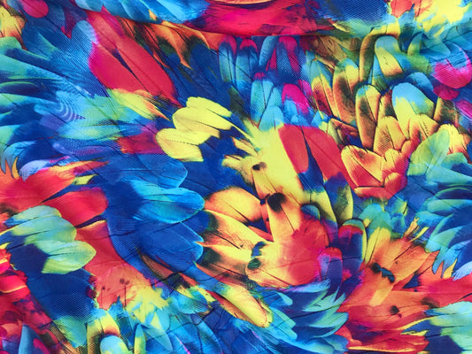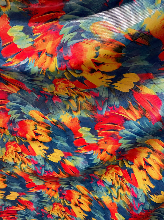 Exotic feathers design multicolor print on best quality of nylon spandex with clear dot 4-way stretch 58/60” Sold by the YD. Ships Worldwide
