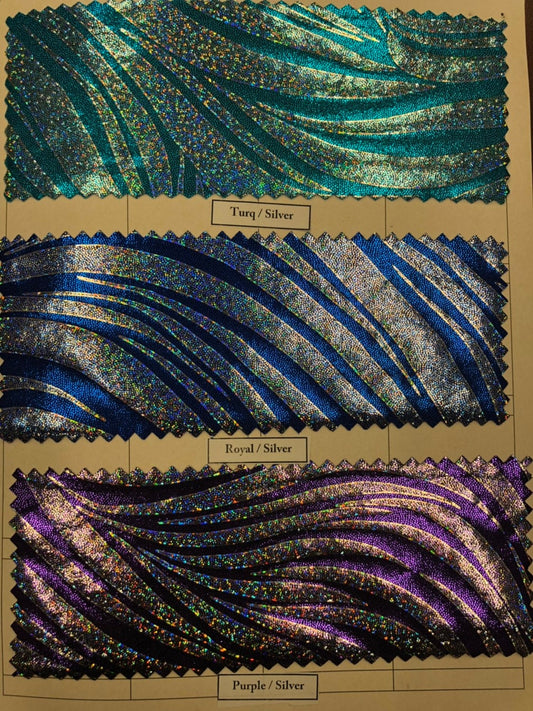 Metallic spandex zebra design w/exquisite hologram foil 4way stretch 58/60" Sold by the YD. Ships worldwide from Los Angeles California USA.