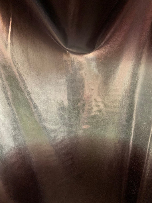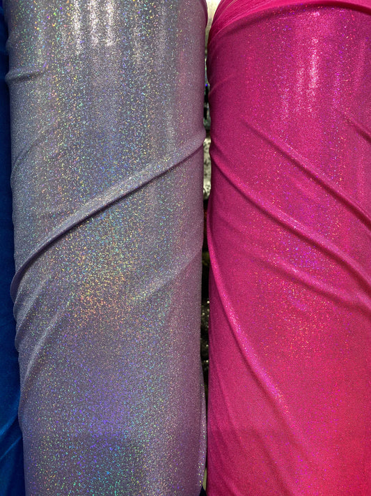 Iridescent foggy foil Hologram metallic nylon spandex 4-way stretch 58/60” Sold by the YD. Ships worldwide from Los Ángeles CA USA.