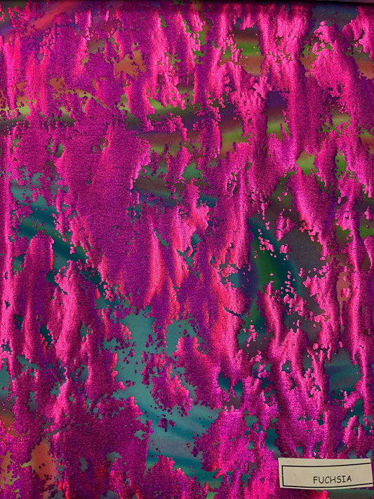 New lava print foil tie dye metallic nylon spandex 4-way stretch 58/60" Sold by the YD. Ships worldwide from Los Angeles California USA.